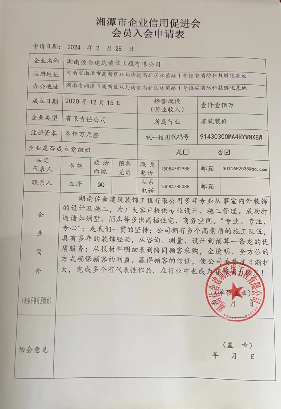 湖南佐舍建筑裝飾工程有限公司2023年度信用報(bào)告 2023 已發(fā)布